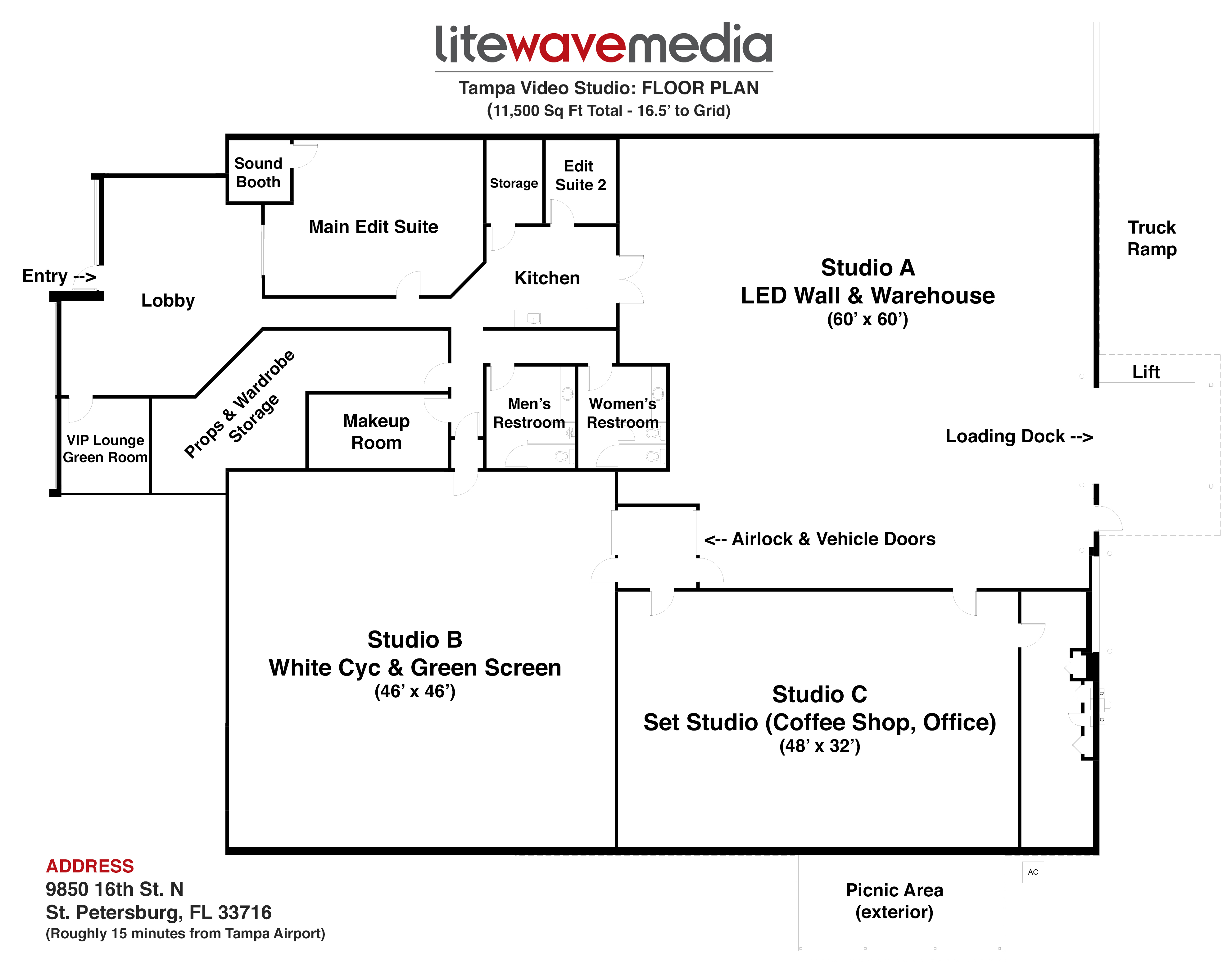 Our green screen studio is just 10 minutes from the St. Petersburg/Clearwater airport & only 15 minutes from Tampa Airport!
